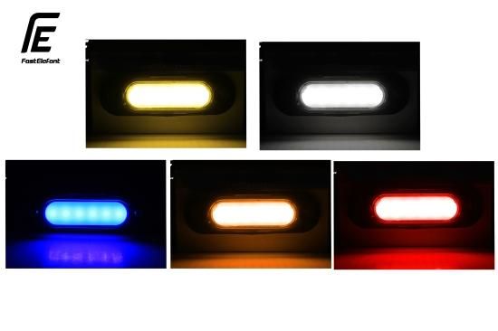 FastElefantオリジナルのフラットマーカーです。レンズがスモークタイプなので消灯時はブラックのソリッドな印象になります。ヨーロッパスタイルなパイプバンパー装着に最適。取付ける面がフラットな形状と丸みを帯びたパイプ状の双方に対応できるように2種の台座(グロメット)を付属させました。消費電力は1つあたり24V車であれば、わずか0.09A(90mA)で量を気にせず取付けできます。--仕様---------------12V/24V対応レンズ色:スモークLED数:6個寸法:L74mm×H23mm×D12mm/33mm(埋め込み部分含む)---------------------